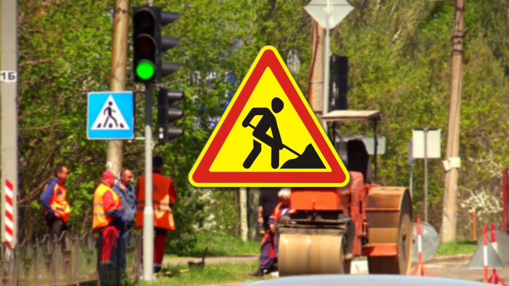 В связи с проведением работ одна полоса перекрыта, движение автотранспорта осуществляется по другой полосе в реверсивном режиме с использованием светофорного объекта и временных дорожных знаков.