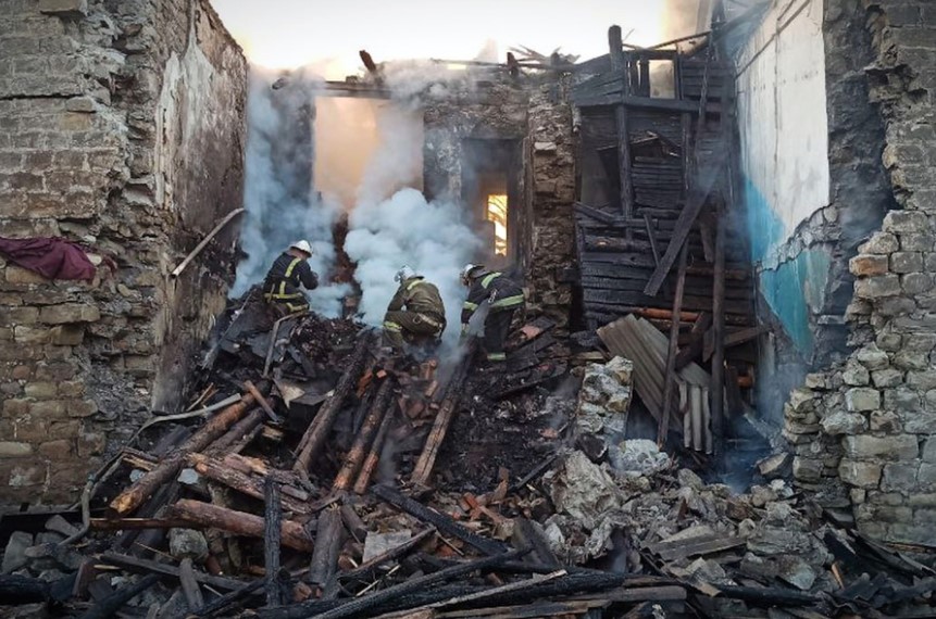 Сообщение о загорании двухэтажного дома в результате обстрела поступило на линию 101 Стаханова 7 апреля в 16:35.