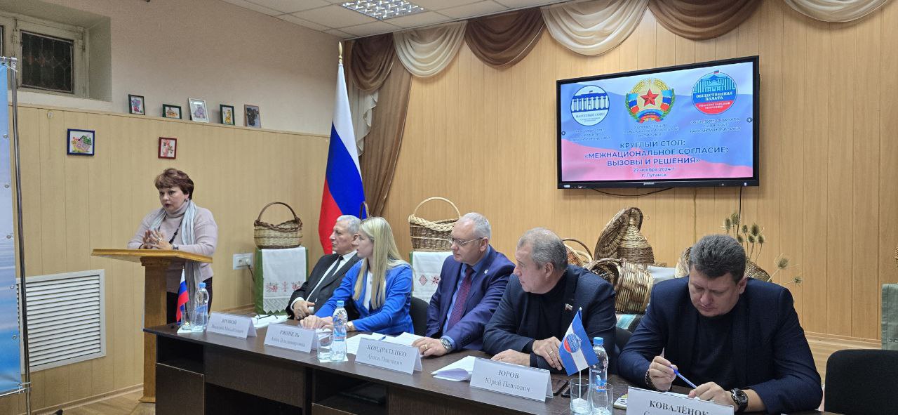 На круглом столе «Межнациональное согласие: вызовы и решения» участники обсудили актуальные проблемы, с которыми сталкиваются различные этнические группы в регионе. В центре внимания были вопросы, касающиеся укрепления взаимопонимания и сотрудничества между различными национальностями, проживающими на территории Луганской Народной Республики.