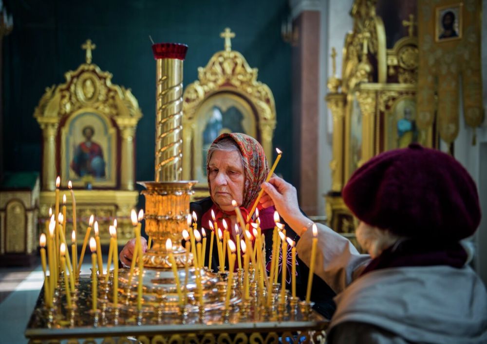 «"В этот светлый праздник, конечно, мы молимся за мир, за наших близких, за наших бойцов. Чтобы все были живы. Чтобы мир пришел на нашу землю и в наши сердца", - сказала РИА Новости прихожанка храма в честь иконы Божией Матери "Умиление" в центре Луганска Наталья.