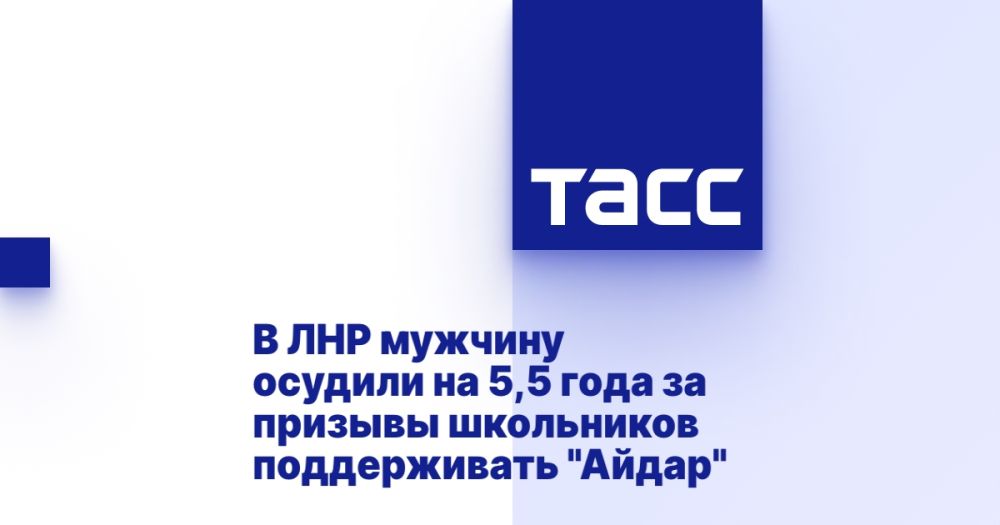 ЛУГАНСК, 9 октября. /ТАСС/. Верховный суд Луганской Народной Республики приговорил к 5 годам и 6 месяцам лишения свободы уроженца Черниговской области Украины, призывавшего школьников поддерживать украинский националистический батальон "Айдар" (признан террористической организацией и запрещен в РФ). Об этом ТАСС сообщили в Верховном суде республики.