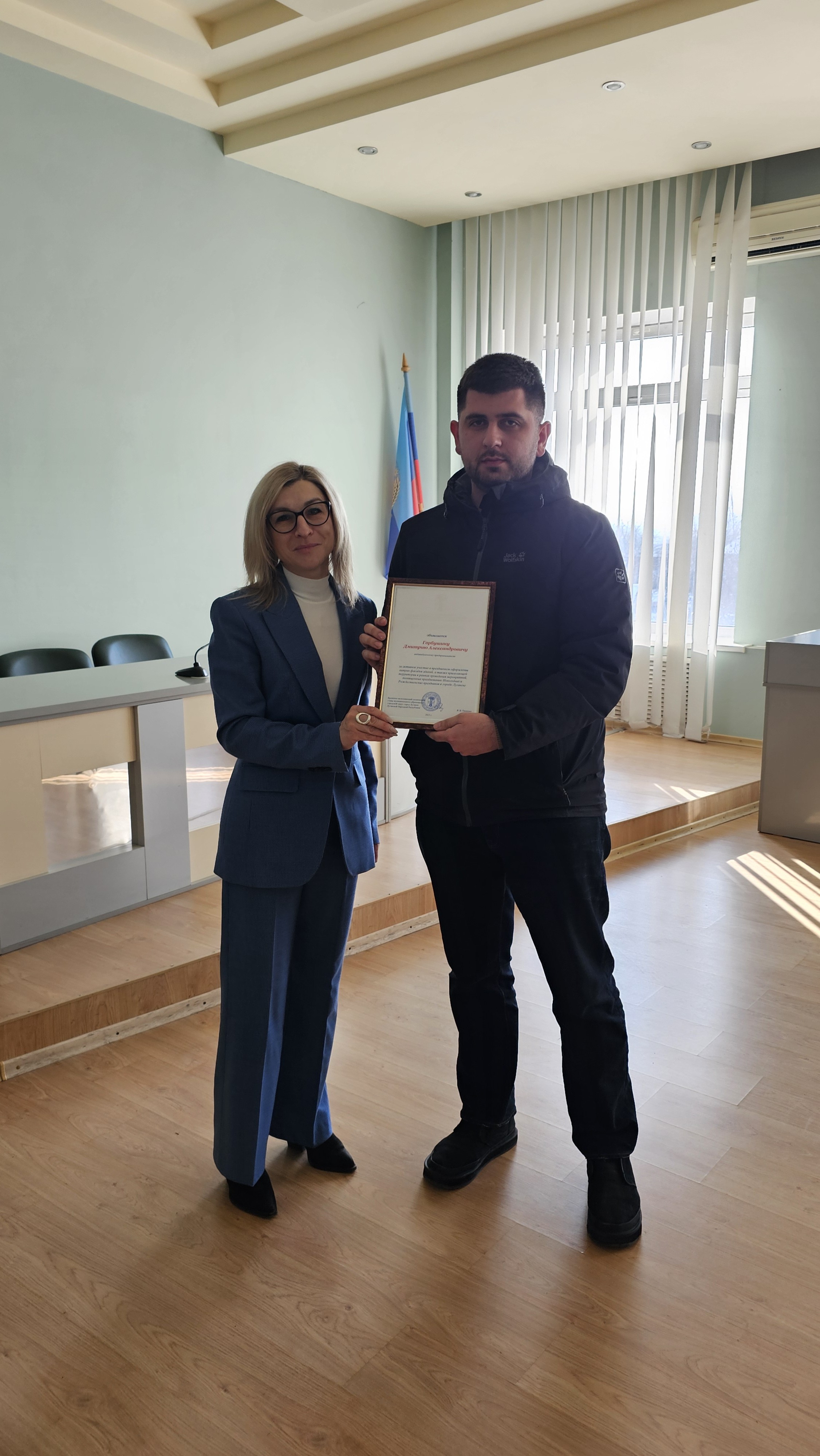 В Администрации Луганска 11 февраля 2025 года состоялось торжественное вручение благодарностей руководителям предприятий торговли и общественного питания, которые приняли активное участие в праздничном оформлении витрин,