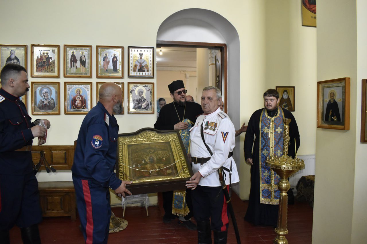 Встречали означенную святыню: главный атаман «Верного казачества» Алексей Селиванов, председатель Совета атаманов Андрей Гриценко, настоятель Свято-Николаевского храма, протоиерей Сергий Дубовой, настоятель храма апостола Евангелиста Луки иерей Виктор Исаенко, прихожане и городское казачество.