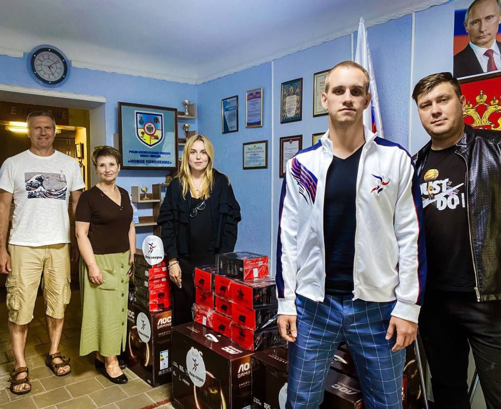 11 июля в ГУ ЛНР " ЛУВК "НОВОЕ ПОКОЛЕНИЕ" сотрудники Минспорта РФ Терехов Алексей и Курдяев Никита доставили и передали новейшие модернизированные компьютеры (в количестве 10 штук), и все необходимое к ним: мониторы, клавиатуры, гарнитуру, коврики, бесперебойники.