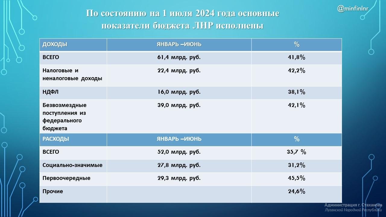 Минфин ЛНР отчитался об исполнении бюджета за 6 месяцев 2024 года