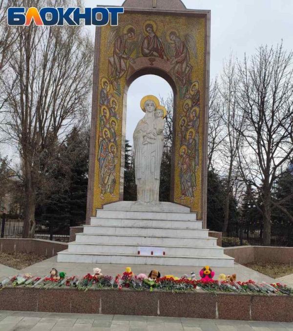 У храма в честь иконы «Умиление» в городе Луганске местные жители организовали стихийный мемориал в память о погибших в результате теракта в подмосковном «Крокус Сити Холле».
