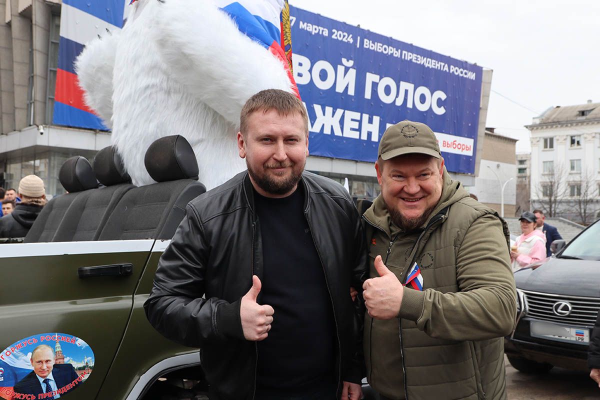 В самом начале колонны проехал символ России и партии «Единая Россия» – огромный медведь с флагом Российской Федерации, а еще на точке сбора жители активно делали вместе с ним фото. Луганчане поделились, что для них сегодня настоящий праздник и они знали, что победа будет за самым достойным кандидатом – Владимиром Путиным.