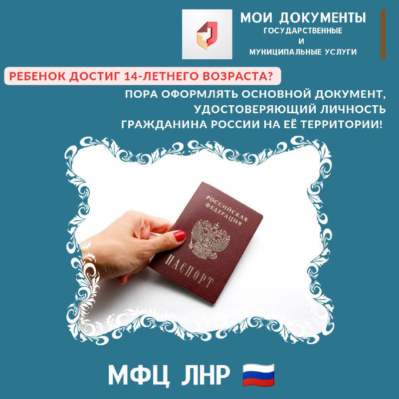 В отделения МФЦ ЛНР можно подать заявление на выдачу паспорта гражданина Российской Федерации по достижению 14-летнего возраста.