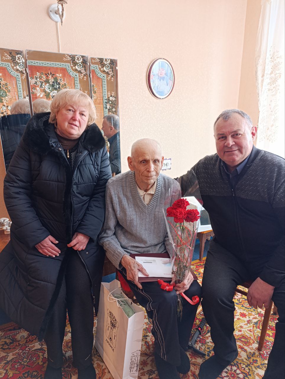 Сотрудники отдела по вопросам территории пгт Юбилейное от имени президента Российской Федерации В.В.Путина и Администрации городского округа ЛНР поздравили с 95-м юбилеем Хоменко Василия Захаровича.